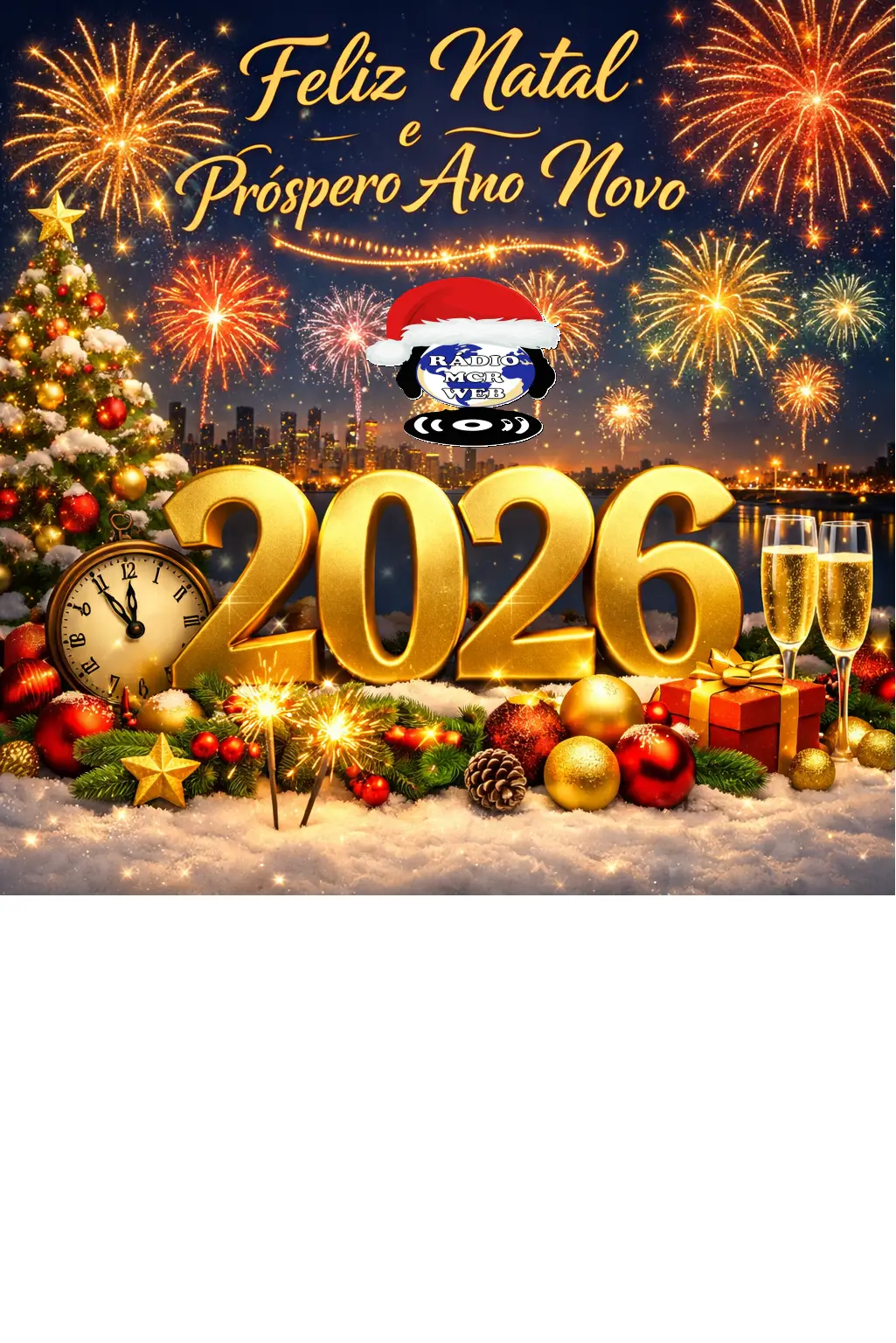 A Rádio MCR Web deseja a todos os ouvintes, parceiros e amigos um Natal repleto de paz, amor, esperança e momentos especiais ao lado de quem você ama. Que o espírito natalino renove os corações, fortaleça os laços e traga muita luz para todos os lares. E que o Ano Novo venha com saúde, alegria, novas conquistas e muita música boa, embalando cada dia com emoção e boas lembranças. Agradecemos por fazer parte da nossa sintonia durante todo o ano. Em 2026, seguiremos juntos, levando o melhor da música retrô, flash back, MPB e grandes sucessos internacionais que marcaram época. 🎶 Rádio MCR Web – a trilha sonora das suas melhores lembranças. Boas festas e até o próximo ano!